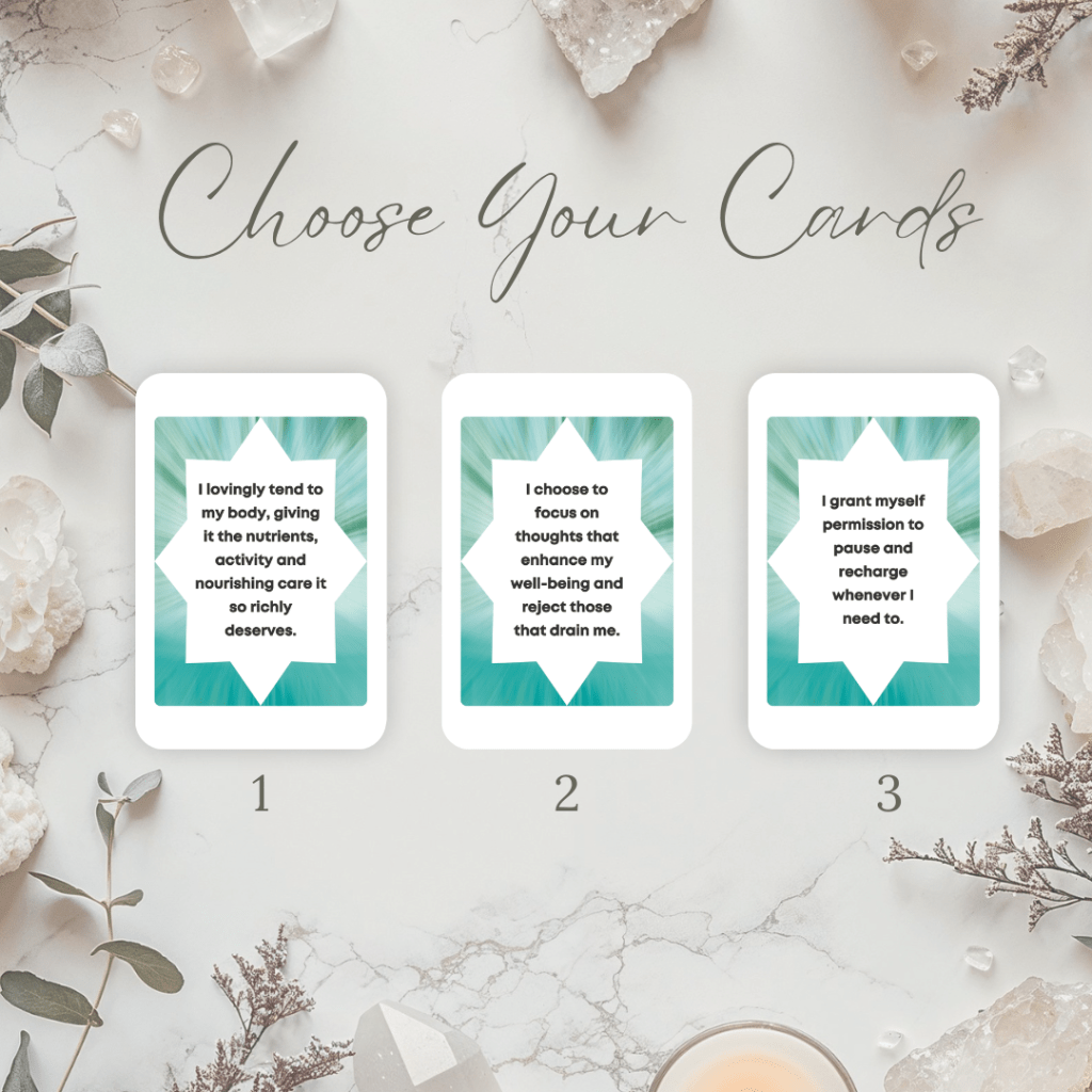 - Card 1 (Mind): An affirmation to nurture mental well-being.