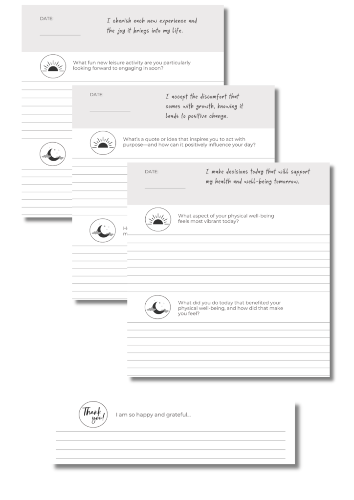 We’ve also created space at the bottom of each page for what we like to call “freestyle gratitude” – a place to note anything you wish to recall in gratitude from the day or evening.